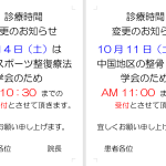 - 診療時間変更のお知らせ R.7年10月4日(土)10月11日(土)